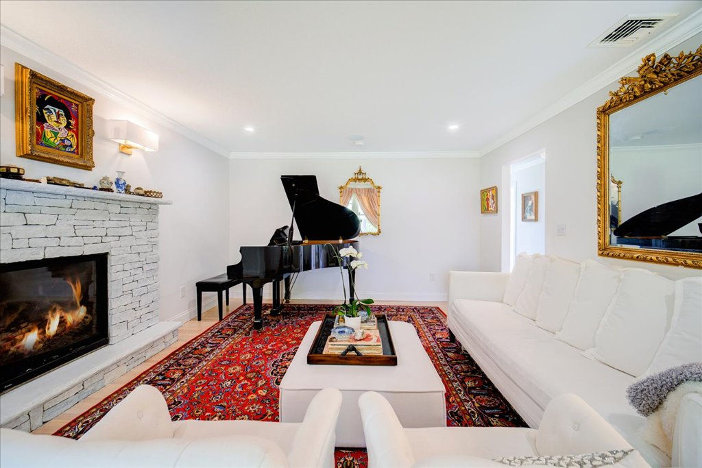 The open concept design of the house allows for entertaining with multiple indoor and outdoor living spaces which is optimum for private hosting and gathering. Entry foyer leads to the formal living room equipped with gas-burning fireplace. Adjacent room is an informal great room which fits a 75"- 85" television and wired entertainment center with 12 speakers throughout the first floor of the house. Adjacent dining area can fit a huge table that seats eight to twelve comfortably. Adjoining to the dining area is a spacious open gourmet kitchen equipped with Ilve Stove grill and oven, Forno French door Refrigerator with 2 drawer freezer. Pull-out microwave and top of the line appliances and fixtures. Stylish Wood Gray cabinetry with brass pulls adorn the marble backsplash and Granite countertop. The massive island is the centerpiece of the entire kitchen for intimate cooking celebrations.